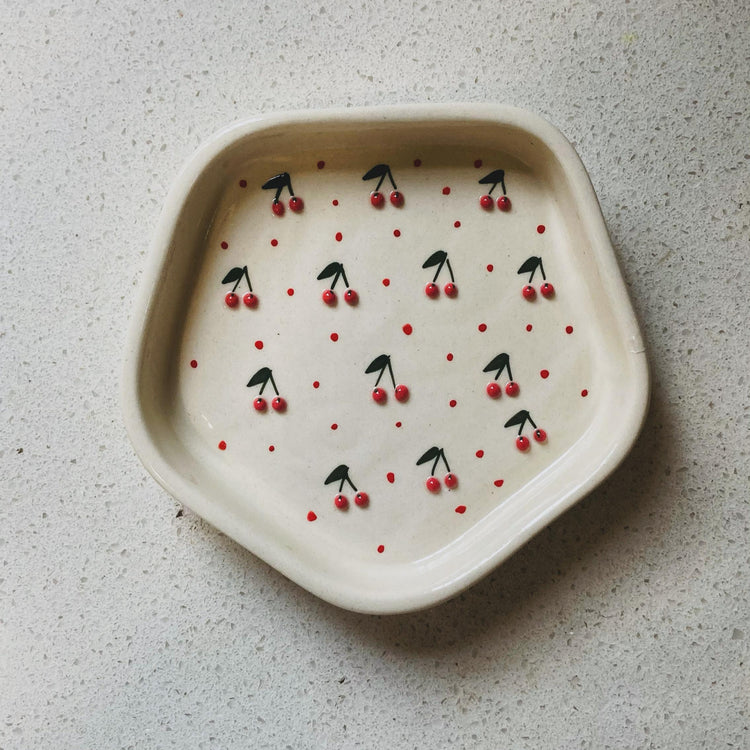 Whether you're serving cake or setting down your iced latte, the Cherry Coaster/Dessert Plate brings a little extra joy to your everyday moments.