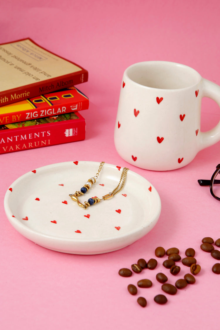 Crafted from durable ceramic with a glossy finish, this mug and plate combo is made for everyday comfort. The simple yet striking heart graphic stands out beautifully—making it a thoughtful gift for someone special or a cozy treat for yourself.