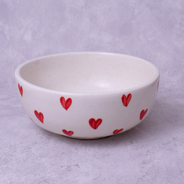 Bring sunshine home with this handmade Red Heart fruit bowl featuring hearts on it.